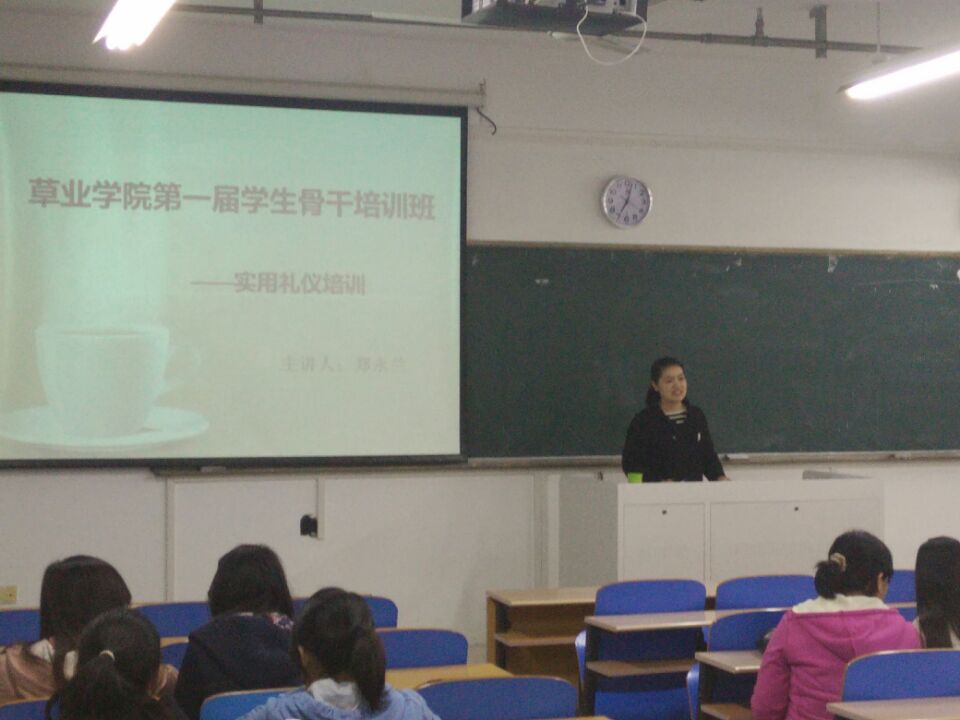 特别邀请了我校知名实用礼仪专家——公共管理学院的郑永兰教授对学生干部进行实用礼仪指导,副院长高务龙老师和辅导员邵星源老师出席本次培训。