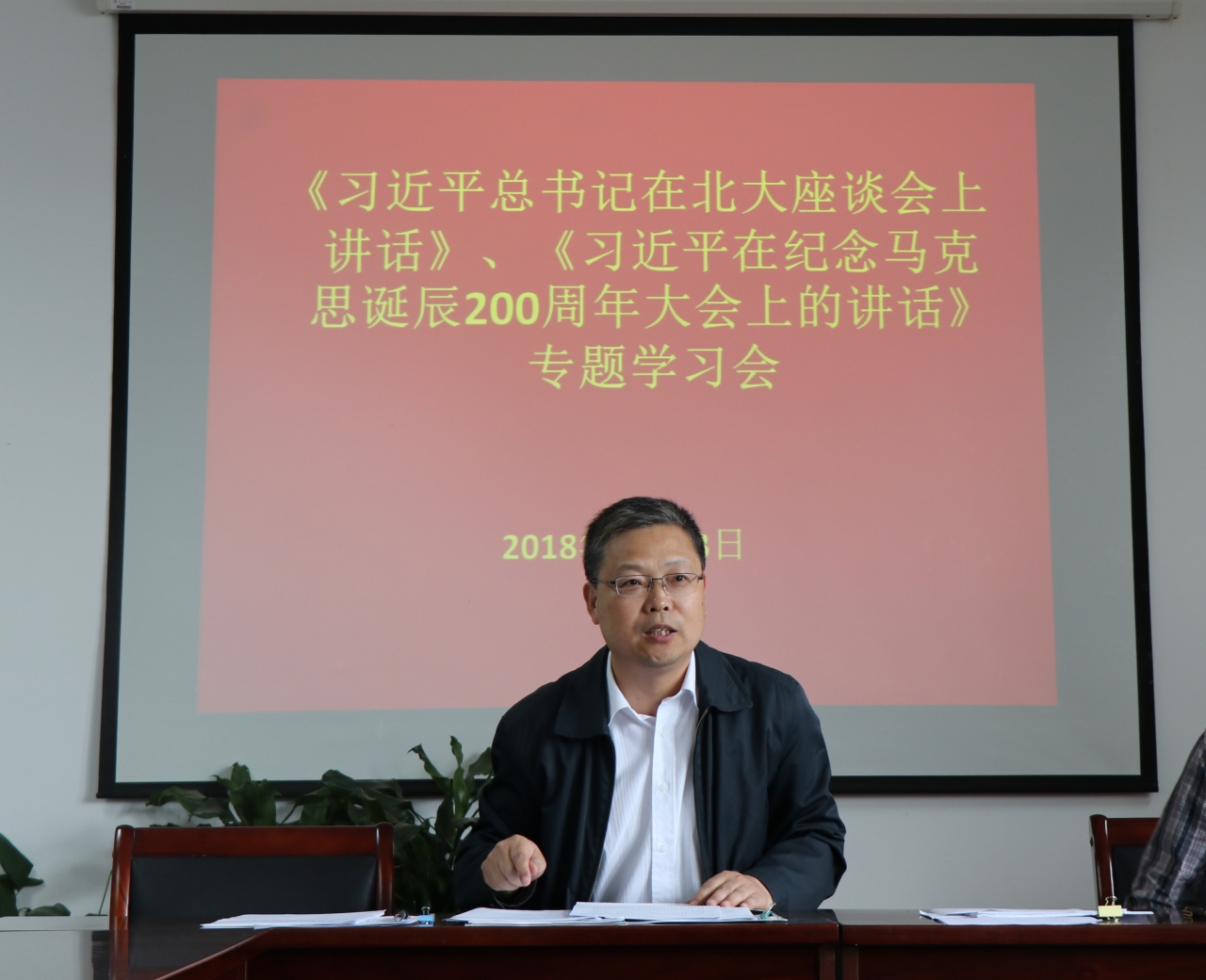 举办《习近平总书记在北大座谈会上讲话》、《习近平在纪念马克思诞辰200周年大会上的讲话》专题学习会。党总支书记李俊龙、院长郭振飞、党总支副书记、副院长高务龙等全院教职工参加了学习会,李俊龙主持了此次会议。