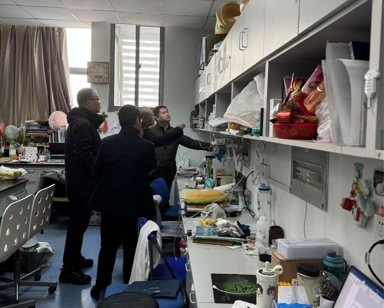 根据“全员、全过程、全要素、全覆盖”安全检查要求,大家走进每一间实验室,逐一详细检查实验室的设备仪器、消防设施、实验耗材、操作规范、台账登记、危化管理、危废处置等情况,对照历次学校集中检查、学院定期检查中发现的问题,重点检查整改落实情况和持续改进措施。同时,检查组对实验室安全管理员的日常工作提出了具体要求,对实验室的师生进行了安全教育和提醒。