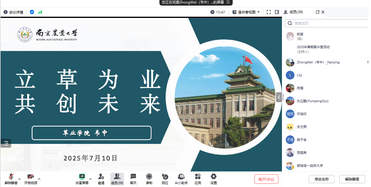 于7月10日举办“立草为业,共创未来”暑期优秀大学生线上夏令营活动。活动由院党委副书记韩立新主持。