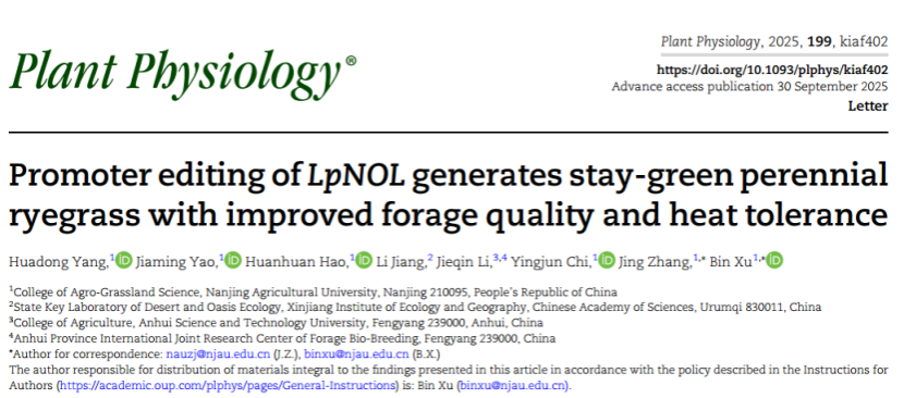 徐彬研究组编辑衰老基因LpNOL启动子,创制持绿、耐热、优质黑麦草新材料。