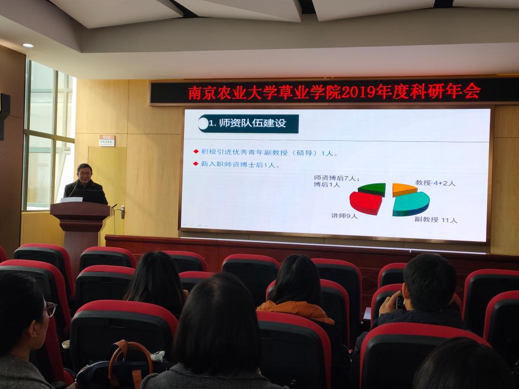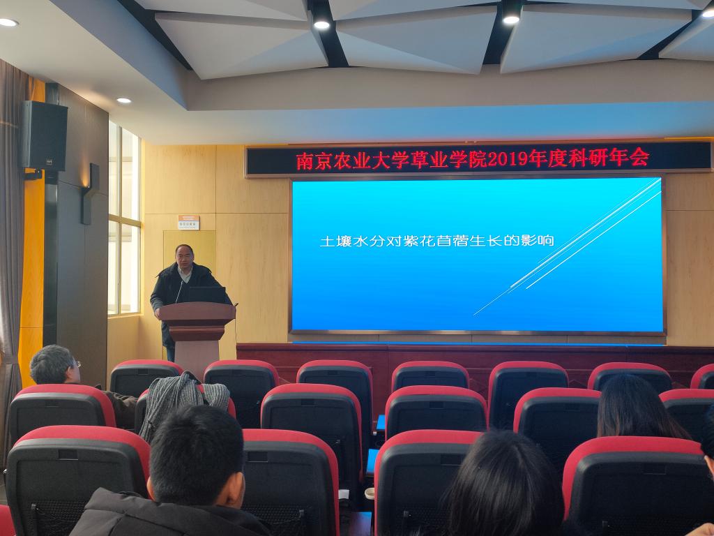 句容草坪研究院召开了2019年度学术年会。学院全体教师参加了会议 ,院党总支书记李俊龙、院长郭振飞,副书记、副院长高务龙出席会议。