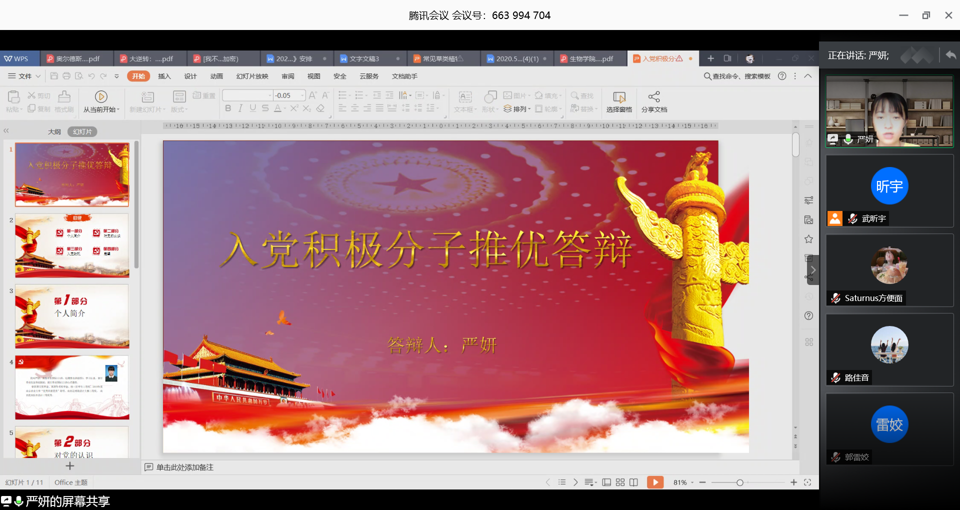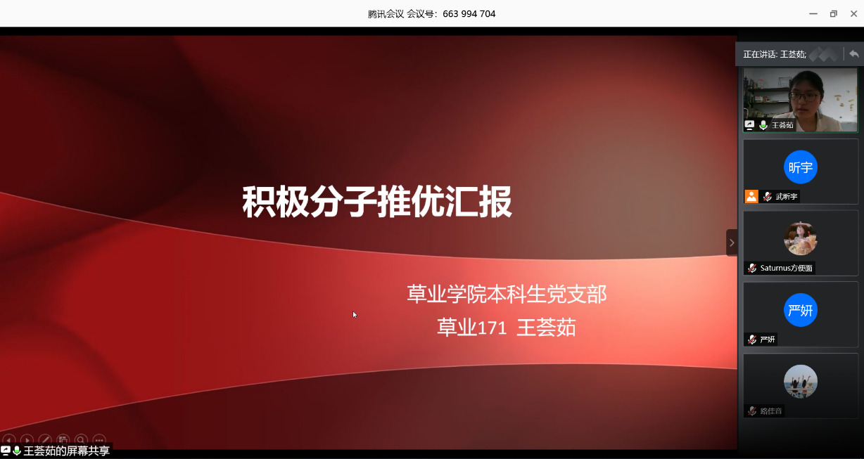 5月20日下午2点,成人视频 本科生党支部利用腾讯会议软件召开了本科生党支部发展预备党员会议,武昕宇书记主持会议。