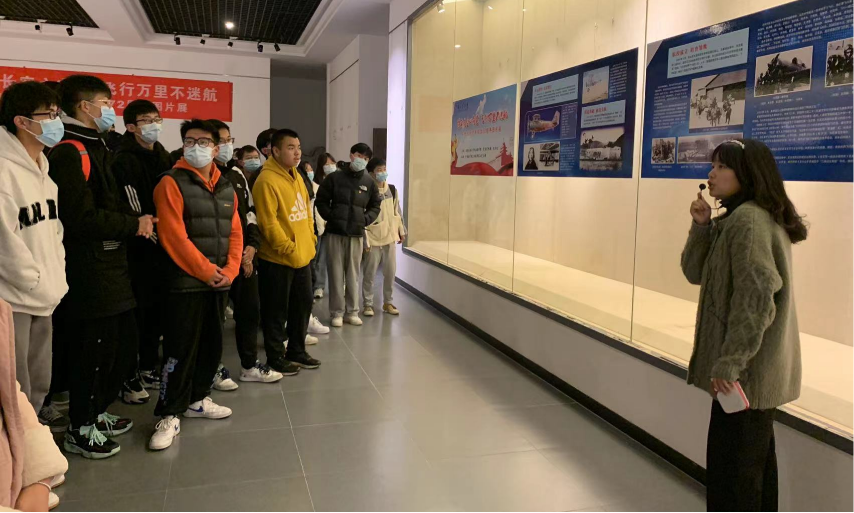 党委宣传部、保卫处、外国语学院主办的《搏击长空心向党,飞行万里不迷航》——庆祝人民空军成立72周年专题图片展。