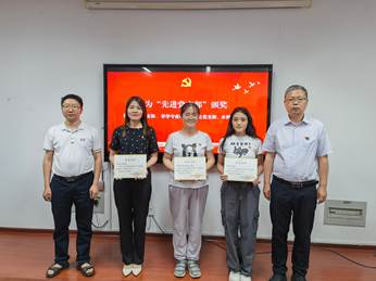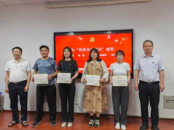 党委关于庆祝建党102周年评优表彰的决定》,熊富强副部长、李俊龙书记为学院先进党支部、优秀共产党员、优秀党务工作者颁奖。