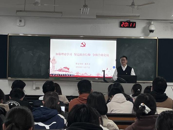 在培训课上,高务龙以“加强理论学习 坚定政治信仰 争做合格党员”为主题,围绕“合格党员标准”“加强理论学习”以及“争做合格党员”三个方面,引导同学们努力成为合格党员。高务龙通过对习近平总书记关于合格党员标准的提炼,深入阐述了合格党员核心要义“忠诚、牺牲”;通过对党的十八大以来历次主题教育主题的提炼,深入阐释了加强理论学习、锤炼政治能力、提升文化修养的重要性;通过对习近平总书记在中国人民大学考察的重要讲话精神的解读,深入阐释了成为合格学生党员的路径方法。