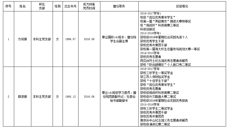 根据成人视频 党员发展工作安排,经转正答辩,党支部讨论,结合个人成绩、综合测评以及获奖任职等综合表现,经院党委讨论审核,拟对本科生2名中共预备党员进行转正,具体名单如下: