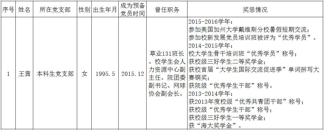 根据成人视频 党员发展工作安排,经转正答辩,党支部讨论,结合个人成绩、综合测评以及获奖任职等综合表现,经院党委讨论审核,拟对本科生1名中共预备党员进行转正,具体名单如下: