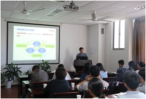 王德利教授的报告题为“草地的适应性管理”。 他首先讲解了草地管理的方式以及重要性,然后引出传统草地管理存在的问题:与人类之间的不和谐。王德利教授从土壤养分-植物-草食动物三个界面来讲解如何从生态系统的角度来管理草地,每个方面都引用了经典研究案例进行详细幽默的讲解。随后,王德利教授与学院师生就相关学术问题展开了讨论和交流。