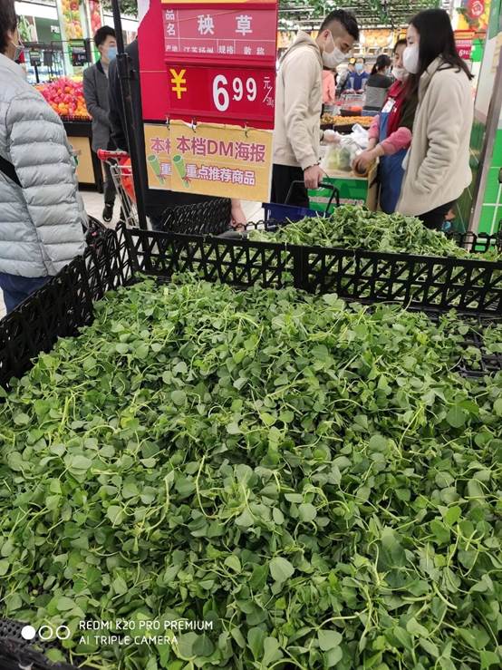 不,超市的货架上摆着一篮子秧草