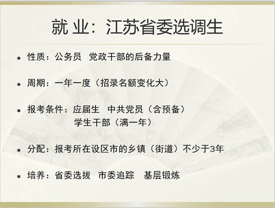 昨天有幸听了两位师兄一位师姐的求职经验介绍,让我了解了从公务员到企事业单位的三类不同的求职路的大致情况,也对未来草业研究生发展有了初步的认识,分享的前辈们每一个都是十分优秀的人,有国奖获得者,有研究生会的骨干,走的路也十分优秀,以我自身能力我可能没办法像他们一样优秀,但是我要以他们为榜样,踏踏实实一步一个脚印去奋斗去追赶,望不负在南农的时光。