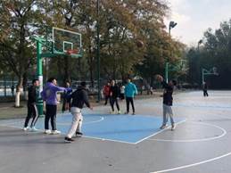 篮球友谊赛顺利开展。老师和同学们的心情似乎也随着这连连几天大雨后难得的晴天变好了,比赛还没开始,同学们就在投篮热身,为正式比赛做准备。接下来,就让我们把目光转向正式比赛吧!