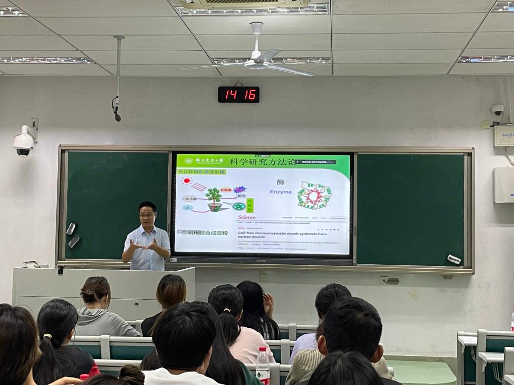 陈煜副教授的报告分为两个部分,第一部分是科学研究的基本方法、程序和规则。他从我校校友蔡韬博士的人工合成淀粉的例子开始,阐释了规范的科学研究的一般规律,详细介绍了科学研究工作中从观察现象,发现问题,提出假说,查阅文献,设计实验,处理数据,分析结果到论文撰写全过程的基本方法与原则。陈老师报告的第二部分着重介绍了从事科学研究工作内含的学术道德准则和必须遵守的基本规范。他结合近年来国内外发生的有较大影响的违背学术诚信与学术规范的典型案例,要求研究生在研究生生涯和学术研究工作中秉持科学、诚信品质。他在报告结尾总结说:科学研究的学术训练和科学道德规范,是以科学为业的“两个轮子”,是在科学殿堂中探寻求索的“两个翅膀”,并举双翼才能学有所得。