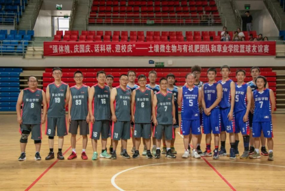 师生篮球队与资环学院土壤微生物与有机肥团队在体育馆举办“强体魄、庆国庆、话科研、迎校庆”篮球友谊赛。