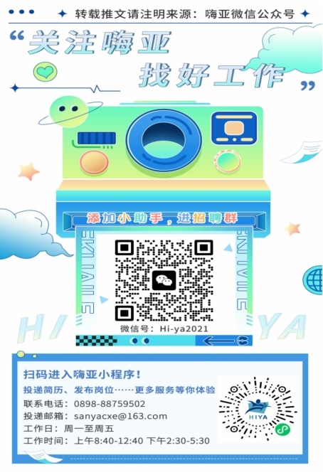 嗨亚公众号作为招聘平台仅帮助用人单位转发信息