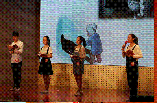 最后一组朗读也是感人至深,第十二组《奶奶家的门和院墙》以奶奶作为情感的寄托,讲述了自己和奶奶的故事,自己在成长,奶奶却在不断变老。直到每一次的离别都是未知,内心很疼却又无助,深情的朗诵使得在场所有的老师同学都陷入了沉思。